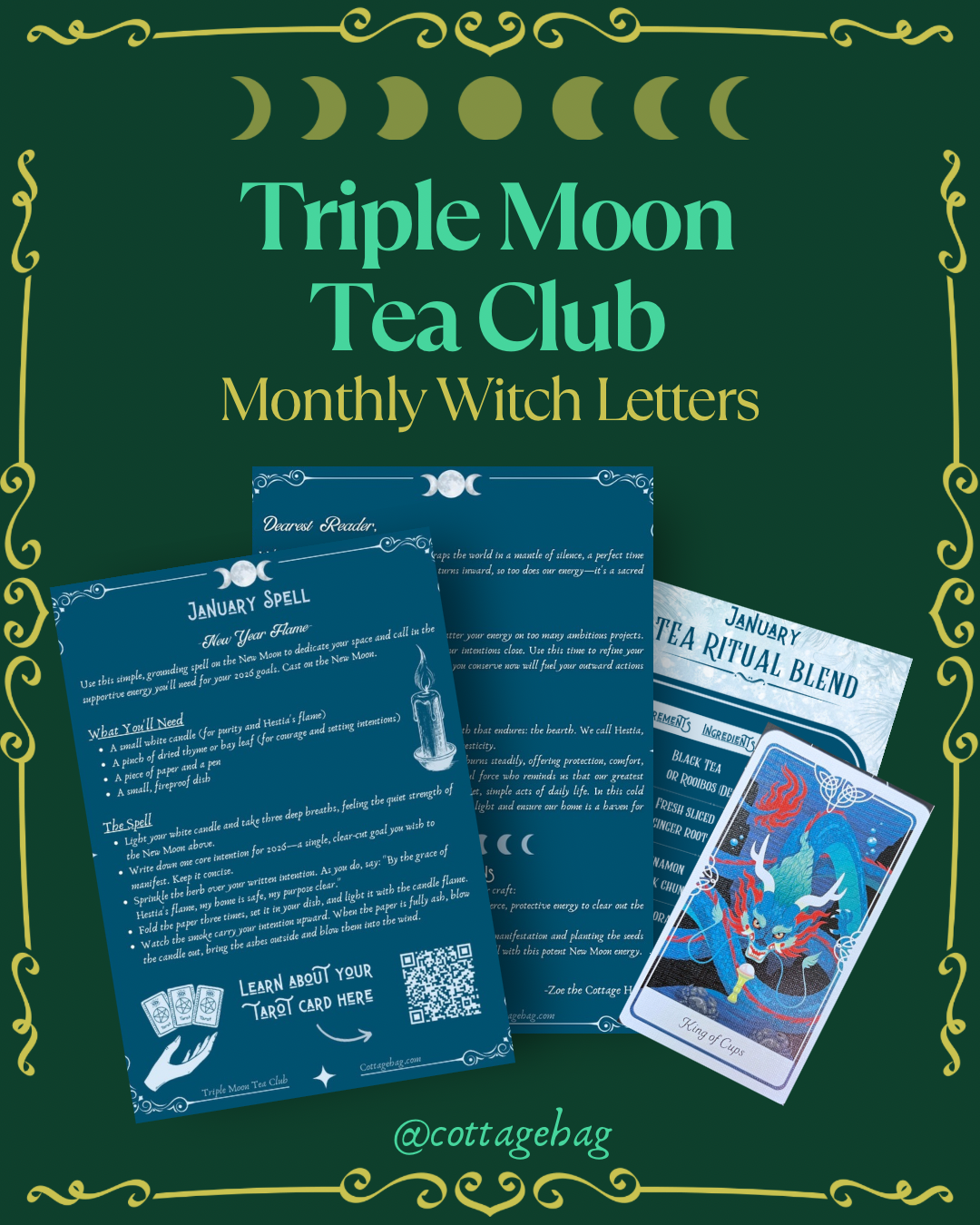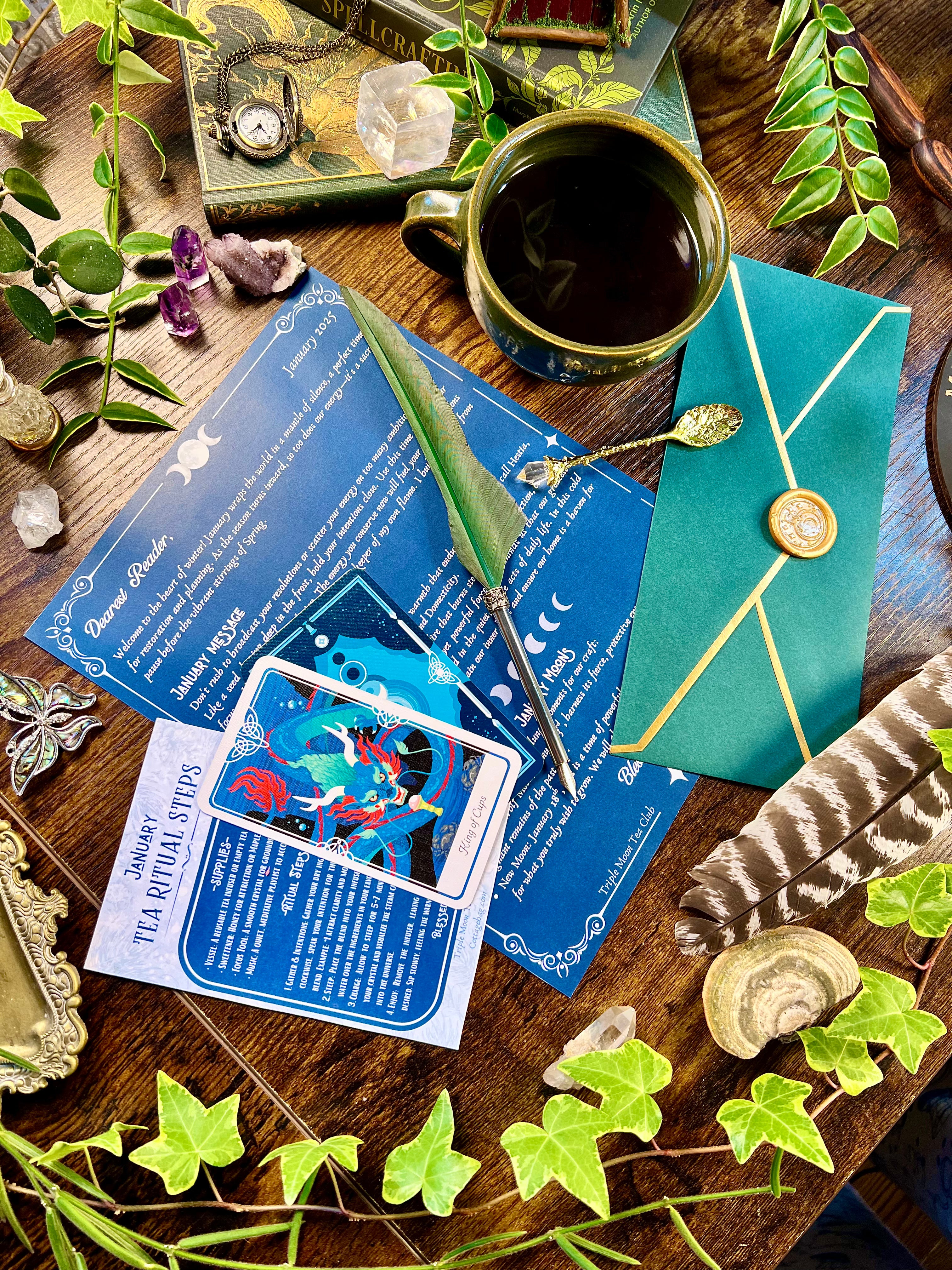 Receive monthly themed letters written by a witch featuring a ritual tea recipe & a intuitively chosen tarot card!